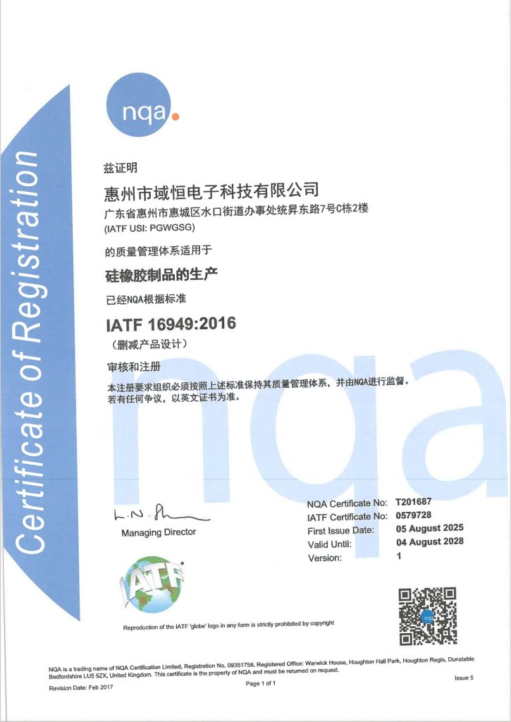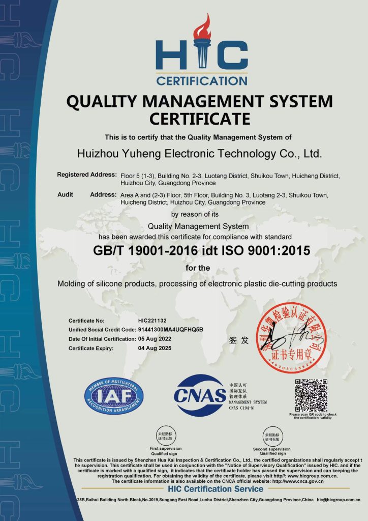 At Yuheng Electronics, we deliver precision-crafted silicone, die-cut, and custom plastic solutions designed for industries where quality and reliability are non-negotiable. Our ISO 9001, ISO 14001, and IATF 16949 certifications reflect our commitment to excellence across every product—from conductive keypads and waterproof seals to thermally conductive interfaces and injection-molded parts.